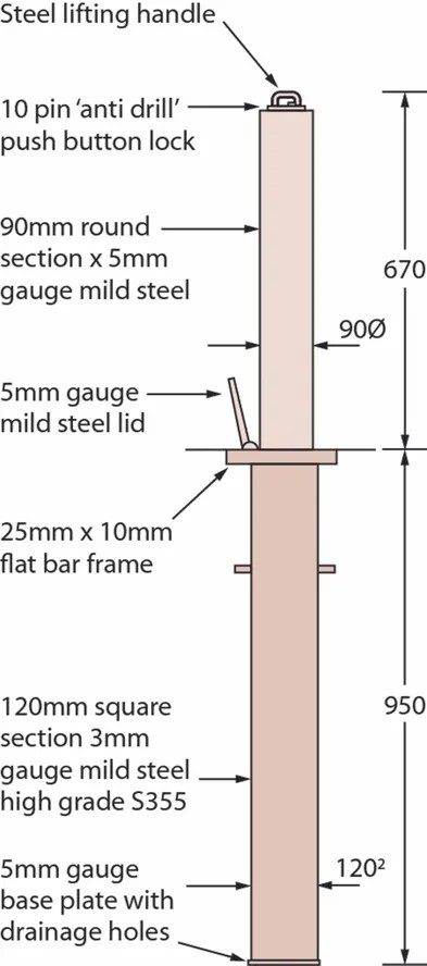 Each bollard measures 670mm in height with an 950mm depth of anchorage for stable, long-term protection.