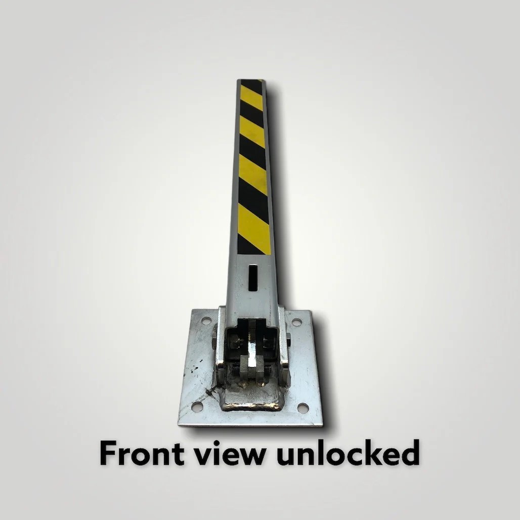 The bollard folds flat when not required, allowing temporary access without removing the unit. Ideal for property managers, businesses, and homeowners who need reliable parking control and property protection.