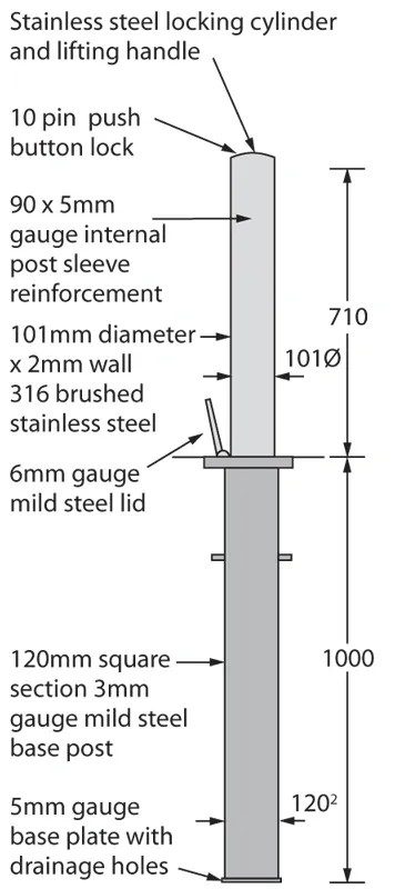 Each bollard measures either 101mm diameter, 710mm or 900mm in height with a 1000mm depth of anchorage for stable, long-term protection.